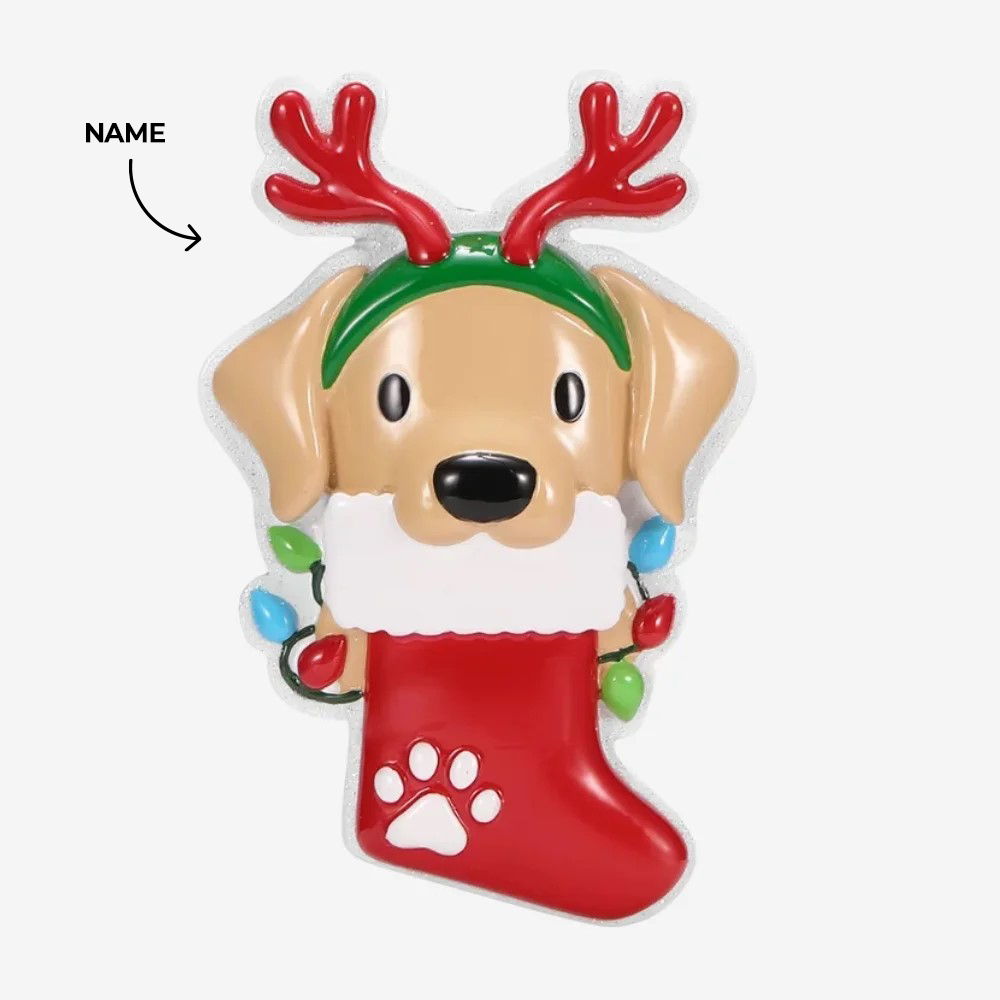 Celebrate the holiday season with a dash of festive fun using our Dog with Clip-on Reindeer Antlers ornament. This playful decoration features an adorable dog design complete with detachable reindeer antlers, adding a whimsical touch to your holiday décor. The antlers clip securely onto the ornament, ensuring they stay in place as you hang it on your tree or display it around your home. Crafted from high-quality materials, this ornament combines charm and durability, making it a delightful gift for dog lovers and a cheerful addition to your seasonal decorations. Spread holiday cheer with this unique and merry dog-themed ornament!
