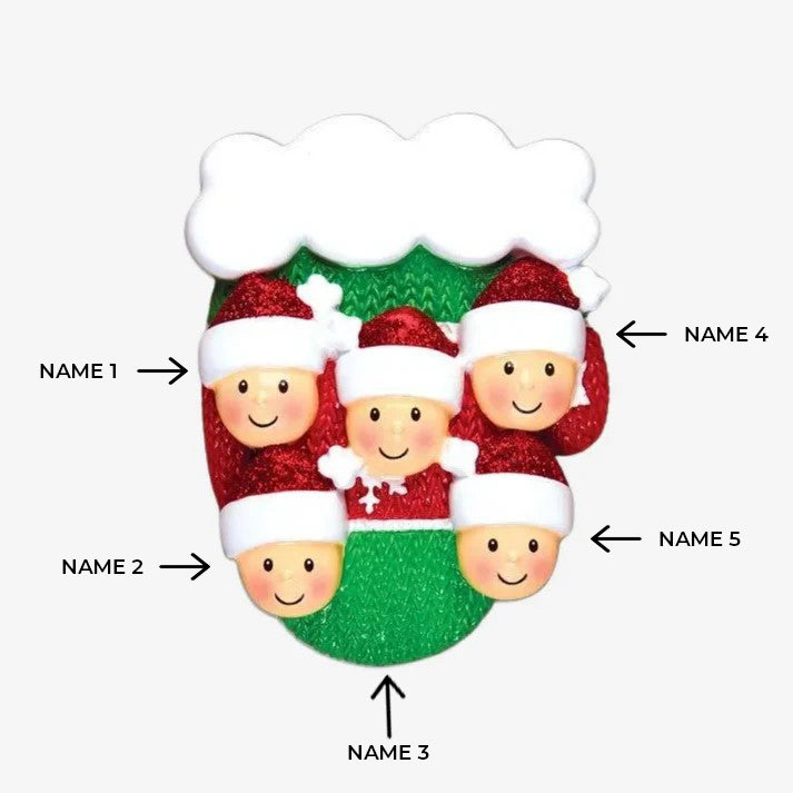 Mitten w/Faces Family of 5 Personalized Christmas Ornament